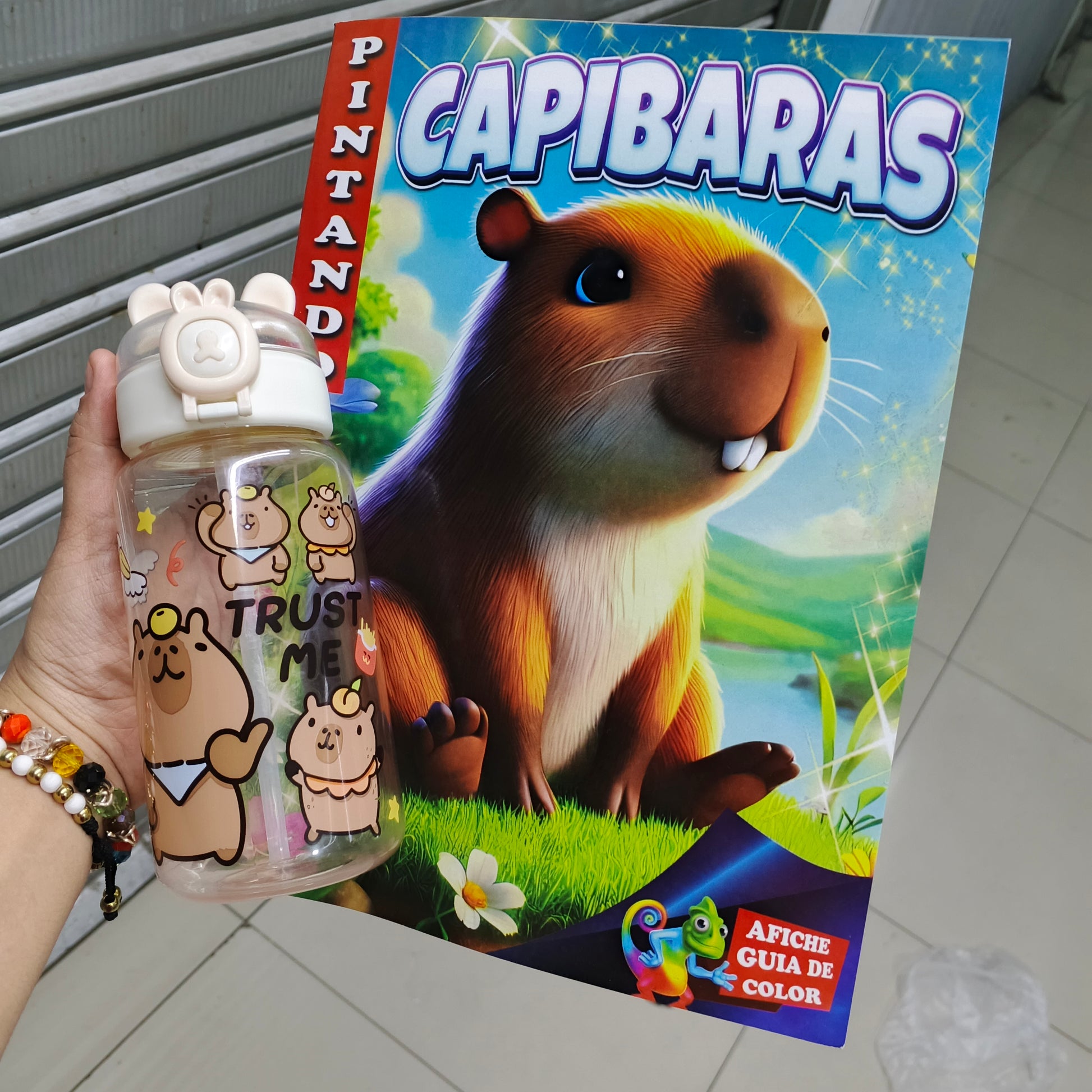 🧃 Botella Capibara con tapa anti derrame y diseño adorable — perfecta para el colegio o salidas.